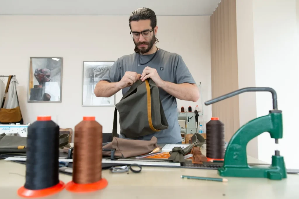Ξεκινούμε λοιπόν το επιχειρηματικό ταξίδι μας, γνωρίζοντας τις προκλήσεις που είναι μπροστά μας αλλά και με δεδομένο την αποφασιστικότητα και την όρεξή μας να κατασκευάσουμε και να διαθέσουμε στην αγορά, προϊόντα ποιοτικά, ξεχωριστά και με υλικά φιλικά προς το περιβάλλον. Οι δημιουργίες μας κατασκευάζονται σε μικρό αριθμό παραγωγής, με χειροτεχνική προσοχή στη λεπτομέρεια και με δυνατότητα αλλαγής ορισμένων λεπτομερειών τους κατά παραγγελία (custom alterations). Τα προϊόντα μας θα παλιώνουν όμορφα, θα αποκτούν χαρακτήρα με τη χρήση και θα σας συντροφεύουν στις εμπειρίες σας για καιρό.