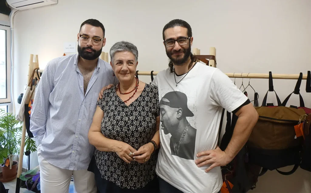 ‘Ετσι σιγά-σιγά προέκυψε η ιδέα να κατασκευάσουμε τσάντες και αξερουάρ που εκτός από τα ήδη γνωστά υλικά, καραβόπανο και δέρμα, θα αξιοποιούν και το ιδιαίτερο αυτό κερωμένο ύφασμα.